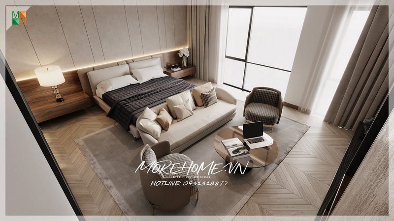 Gia chủ rất quan tâm đến việc trang trí nội thất phòng ngủ để tạo ra không gian nghỉ ngơi thoải mái và tiện nghi.