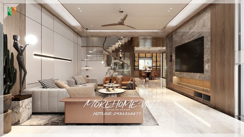 Tủ bếp được thiết kế theo phong cách hiện đại giúp tạo nên một không gian thoáng mát, gần gũi với tất cả thành viên trong gia đình.